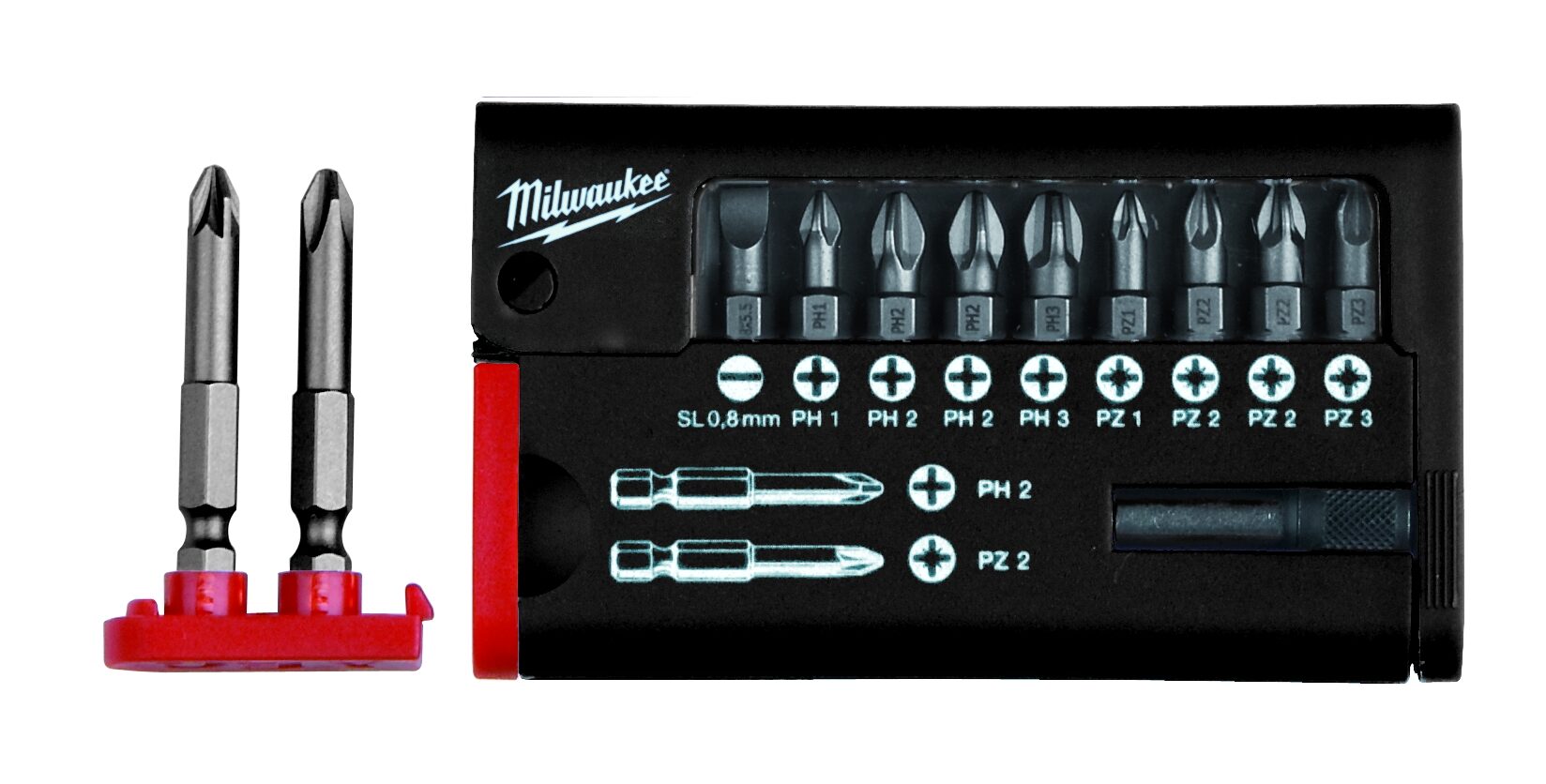 • Frontscheibe schützt die Bits vor Staub
