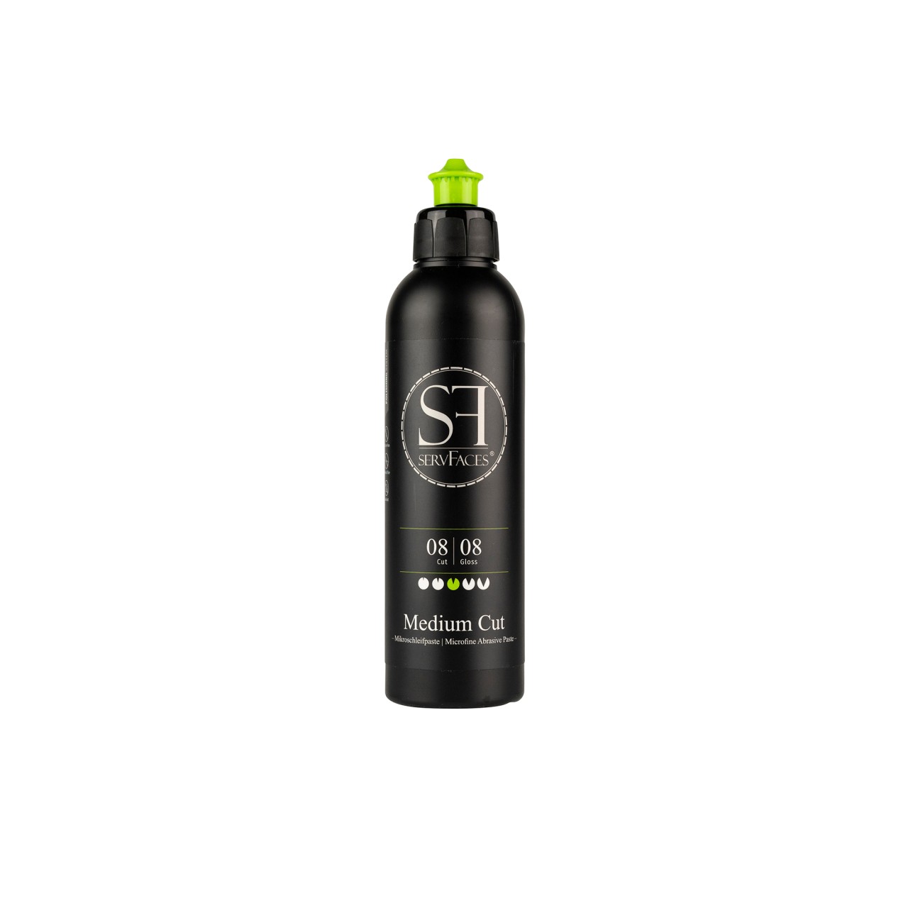 servFaces Medium Cut ist eine moderne, silikonfreie und effiziente Politur zur schnellen Aufarbeitung von leicht verwitterten Lacken und zur Beseitigung von leichten Kratzern. Die Politur entfernt Lackiernebel und Anschliffe ab Körnung P2000 effektiv. Schleifgrad: 8 | Glanzgrad: 8